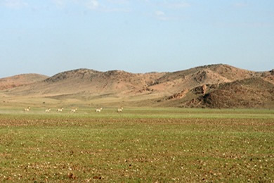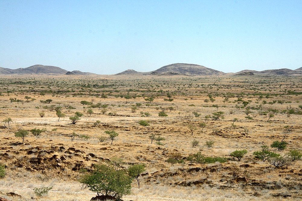 Blick über die weite Ebene. Ganz unten im Bild der Kofferraumdeckel unseres Fahrzeuges. |