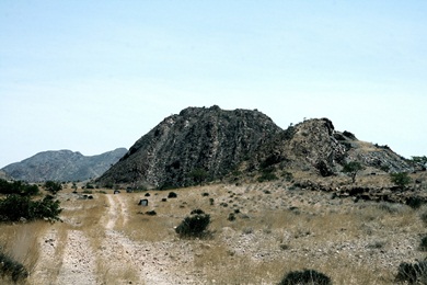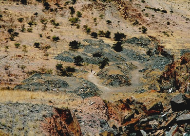Blick von oben auf das Gebiet der Mine. Ca. in der Mitte des Bildes ist ein kleiner Strich. Das bin ich beim Verlassen der Mine. Das waren viele Höhenmeter bei dieser Hitze zu überbrücken! |