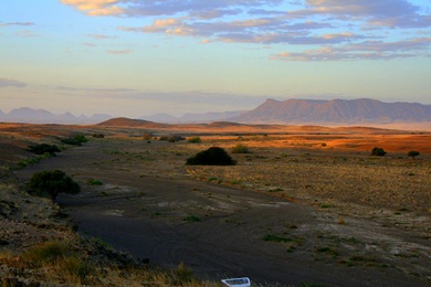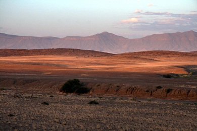 Wunderschöne Landschaft in der Abendsonne - wir waren im tiefsten Kaokoveld - hier gab es nur uns und die Natur..... |