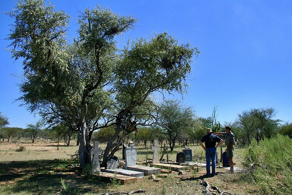 Friedhof der Himbas - es gibt auch schon Grabsteine oder altbewährt mit Hörnern von Rindern |