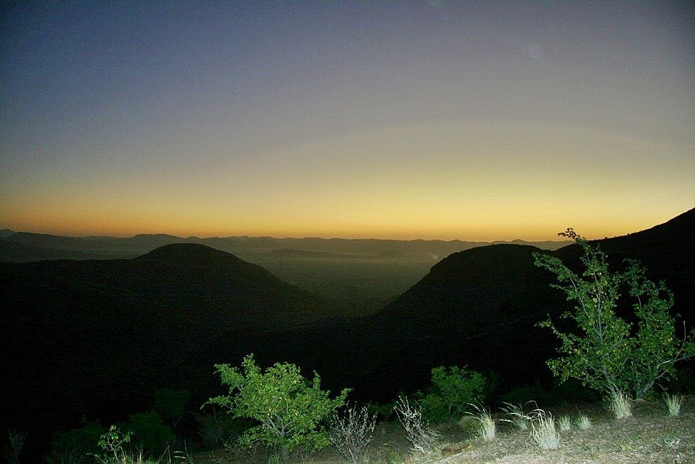 Die Abendstimmung und der Sonnenuntergang waren unbeschreiblich. Wir saßen noch einige Zeit zusammen und unterhielten uns. In der Ferne hörte man hin und wieder die Hunde der Himbas bellen.