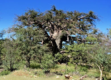 Auf dem Weg nach Opuwo sahen wir einen fantastischen alten Baum. Der Durchmesser des Stammes lag bestimmt bei 3 Meter. |