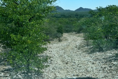 Von Opuwo ging es dann Richtung Etanga. Zuerst war die Strecke noch geteert, doch das erledigte sich recht bald...... |
