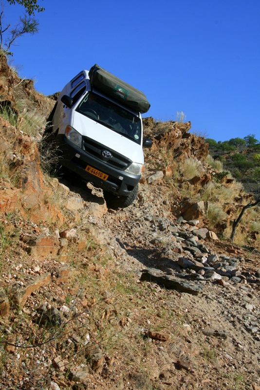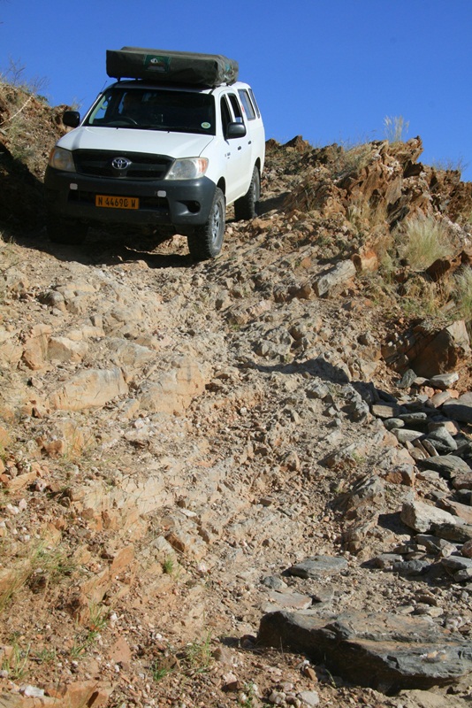 Nachdem alles zusammen gepackt war starteten wir zum gefährlichsten Teil des Van Zyls Passes. Hier war absolute Konzentration und Präzision gefragt. Ich zog es vor, die schwierigsten Passagen zu fuß zu gehen und Bilder zu machen. |
