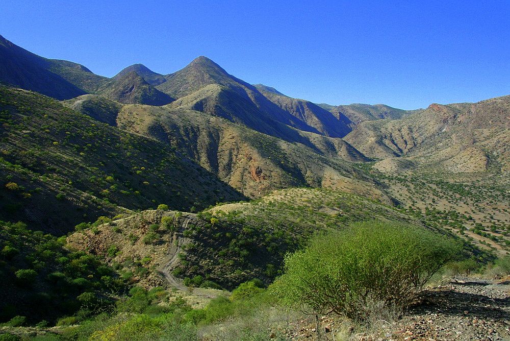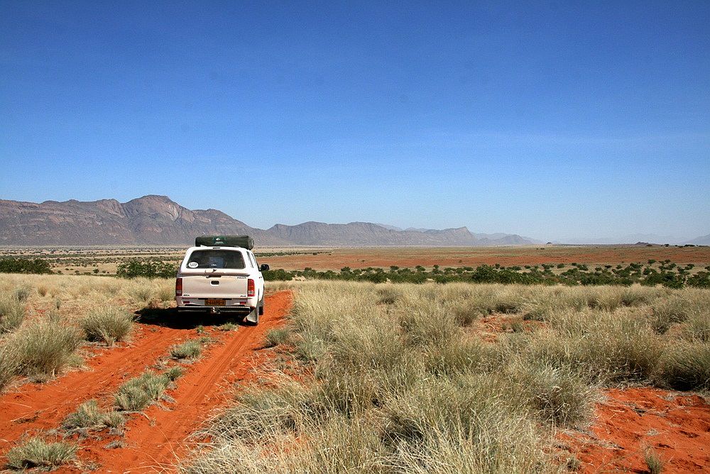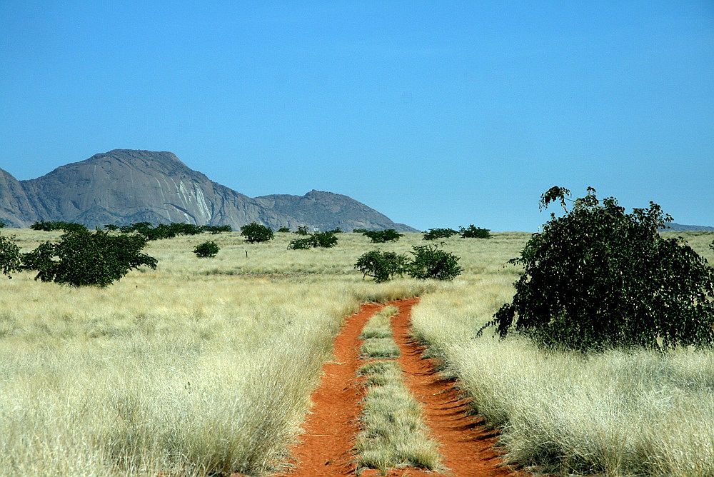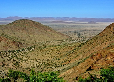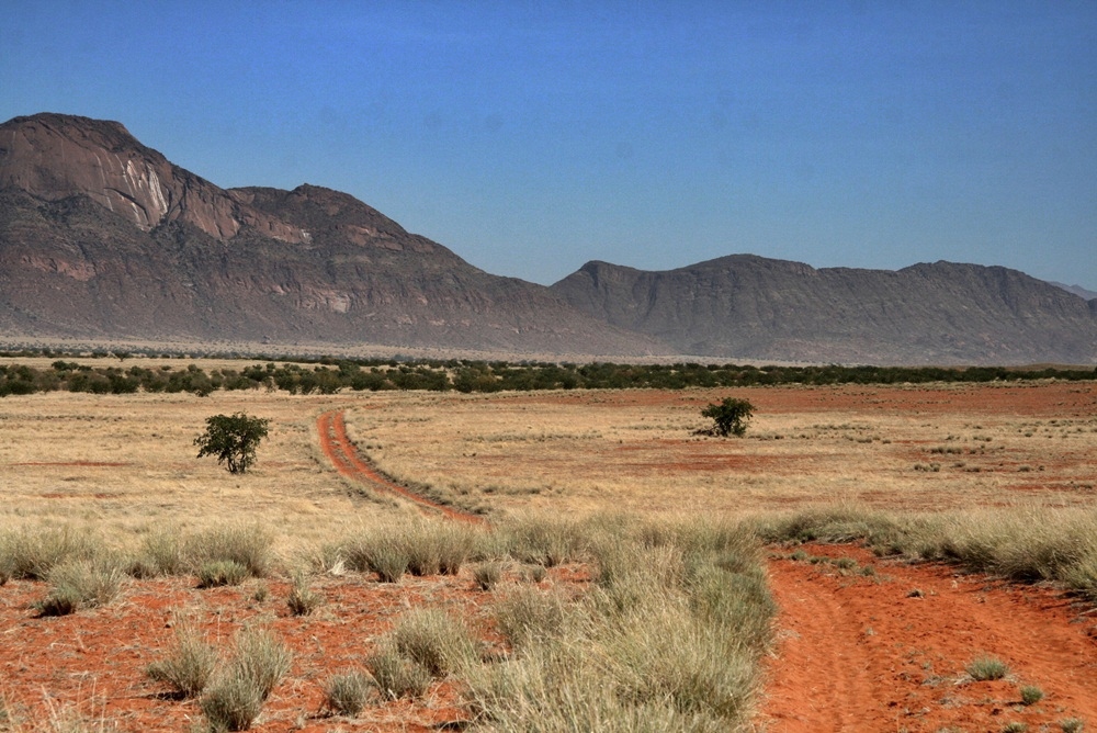 Wechselnde Landschaften in den 80 Kilometern bis zum Camp Syncro am Kunene. Sehr traurig waren wir, weil es im Gegensatz zu 2009 keine wilden Tiere wie Springböcke, Strauße oder Oryxe mehr gab. Marius erklärte uns, dass das mit den regenreichen Jahren in der Vergangenheit zu tun hat. Es gab genügend Wasser und die Himbas waren nicht gezwungen weiter zu ziehen. Und bevor sie ihre eigenen Tiere schlachten - die für sie Reichtum bedeuten - jagen sie die wilden Tiere. Sie jagten ohne Rücksicht zu nehmen und der Bestand der wilden Tiere reduzierte sich rapide. Die weite Ebene war wie ausgestorben - ja geradezu unheimlich leer. 2009 gab es hier noch aberhunderte von Tieren.