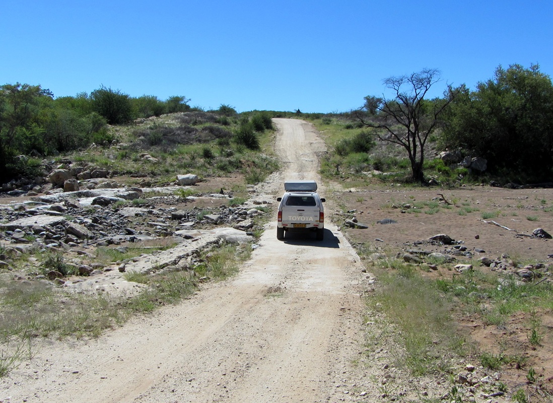 Nachdem wir alles Notwendige besorgt hatten, fuhren wir auf der D2315 und D2306 Richtung Uis, wo wir die Nacht auf dem Campingplatz White Lady B&B verbringen wollten. Diesen Platz kannten wir schon von einer unserer letzten Reisen und wir wußten, dass wir hier auch unsere Akkus für die Fotos laden konnten. |