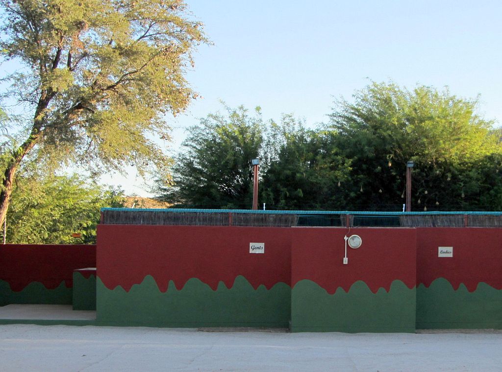 Dieser Campingplatz ist sehr ok. Jeder der ca. 12 Stellplätze (für namibische Verhältnisse etwas eng angeordnet, war aber für uns nicht negativ) hat hier Strom und eine eigene Grillstelle. Es gibt sehr schöne saubere sanitäre Anlagen und einen relativ großen Pool mit etwas Rasen drumrum. Gleich neben der Campsite befindet sich ein kleiner künstlicher See, an dem man morgens hunderte von Vögeln beobachten kann.