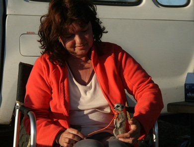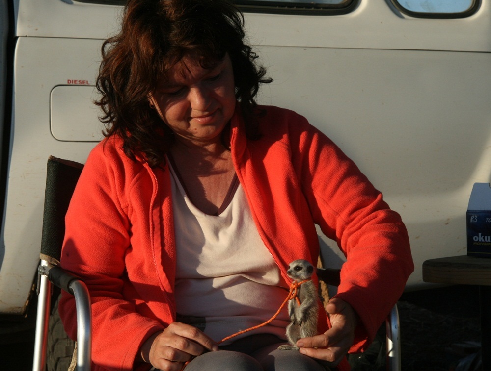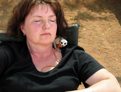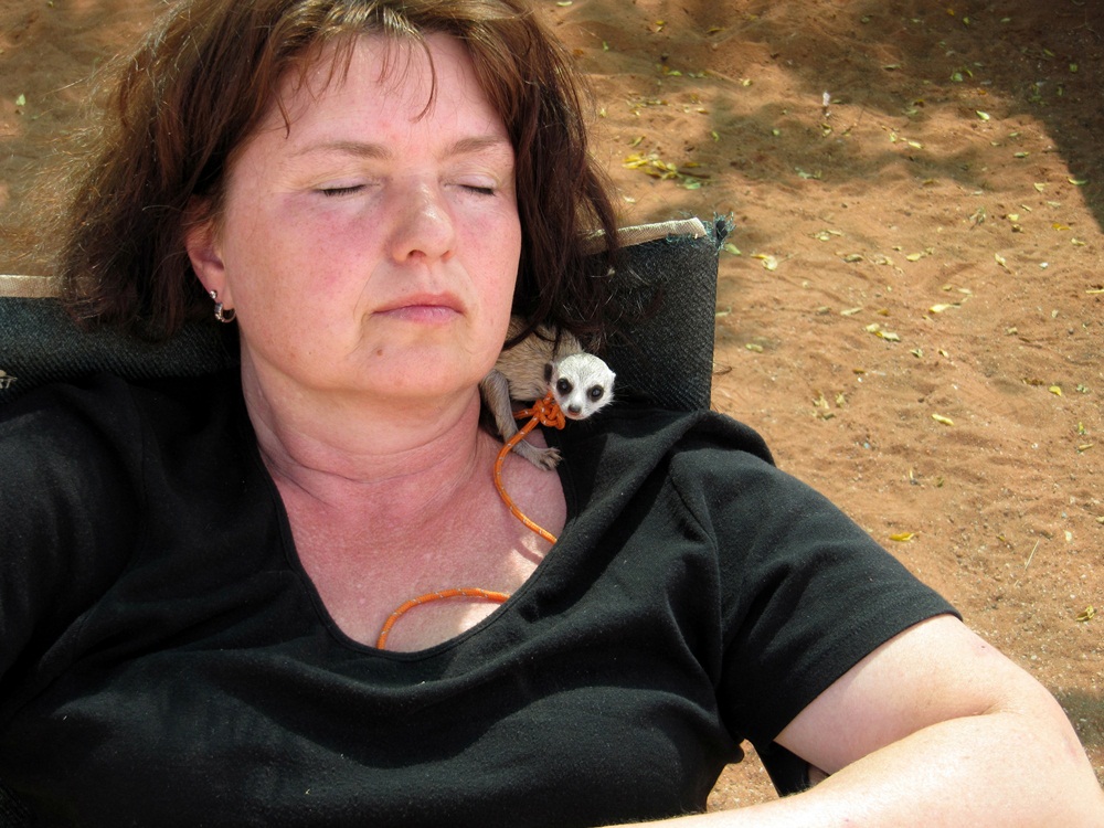 Das Erdmännchen schlief gerne in meinen Haaren. |