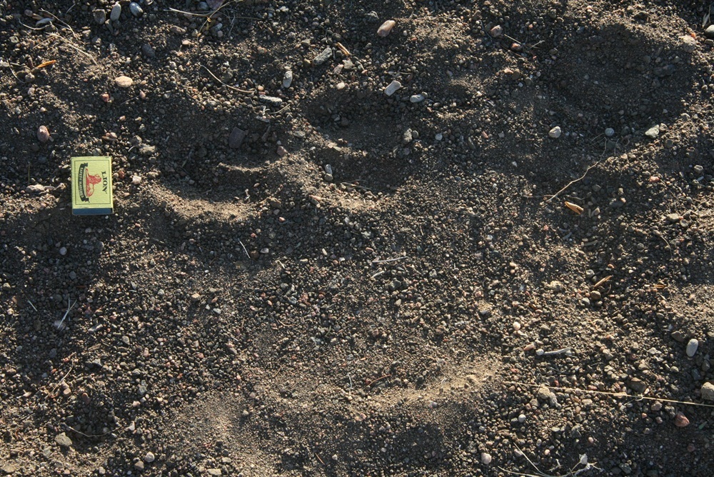 Wie immer verlief die Nacht sehr ruhig. Doch am nächsten Morgen sahen wir in umittelbarer Nähe von unserem Fahrzeug und Marius' Zelt Elefantenspuren. Den Spuren nach mußten es 3 oder 4 Tiere gewesen sein, die nachts unbemerkt an uns vorbeiliefen. Wow, so große Tiere waren auf so leisen Beinen unterwegs, dass wir überhaupt nichts hörten. Selbst das für Elefanten typische gebrummle war nicht zu hören. Sie legten in der Nacht eine ziemliche Strecke zurück.... |