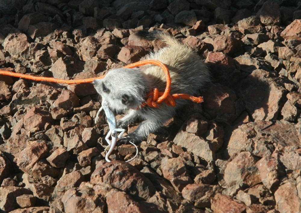 Erdmännchen verspeist wieder eine kleine Echse |