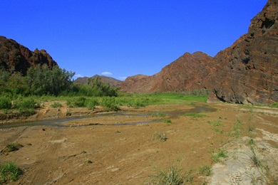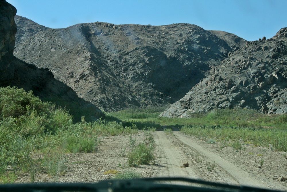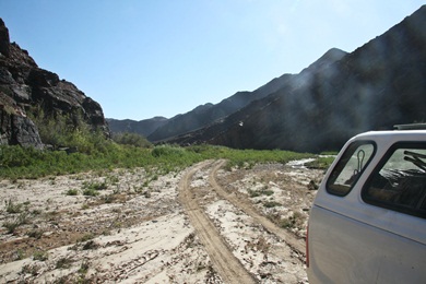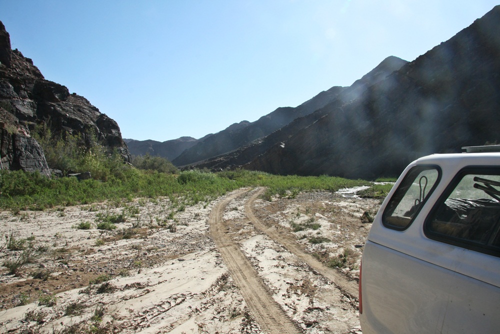 Nach einer Ewigkeit erreichten wir die Berge und fuhren durch ein kilometerlanges Flussbett. |