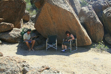 Rast hinter einem Felsen - die Sonne brannte zu stark. |