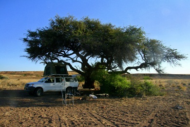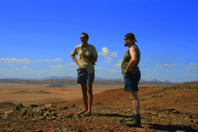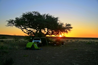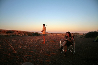 Wieder ging ein ereignisreicher Tag zuende. Wo waren nur all die Stunden geblieben? Jochen und Marius machten noch eine Wanderung in die umliegende Geröllwüste. Schnell war wieder unser Nachlager aufgeschlagen und der Grill angezündet. Dank unserem Kühlschrank hatten wir noch immer leckeres Fleisch und Marius' geniale Braaiwoers an Bord. Natürlich auch immer für den Abend das leckere Tafel Lager. Die Eindrücke des Tages hatten uns schnell müde werden lassen und so legten wir uns bald darauf ins Bett - nicht ahnend, dass wir nachts Besucher haben würden...... |