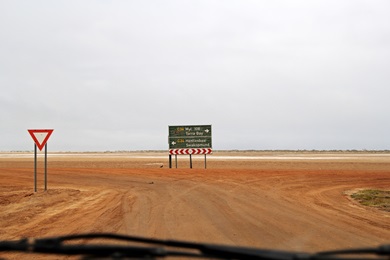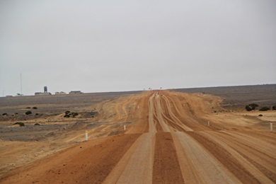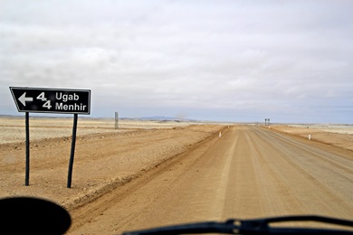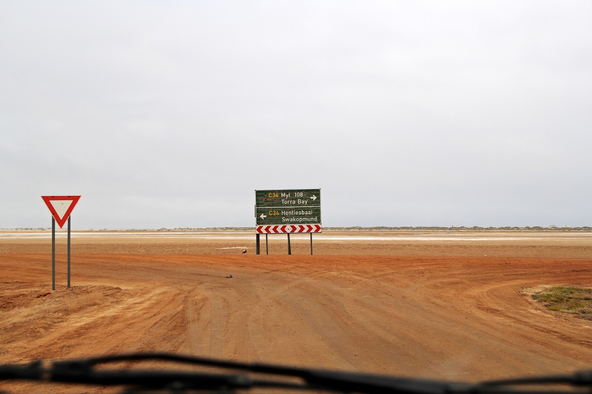 an der Kreuzung C34 - links geht es Richtung Swakopmund - rechts zu unserem Ziel, dem Tor zum Skeleton Coast Park. |