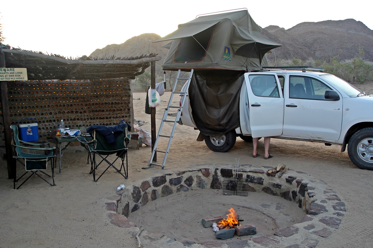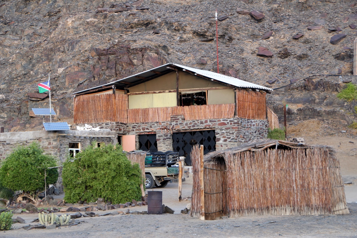 Ugab Base Camp. Im Hintergrund die kreisrunden Bungalows, die man auch mieten kann - die Alternative fürs Zelt. |