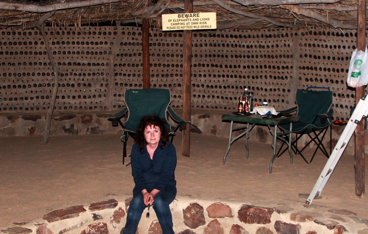 Wir hatten diesesmal einen anderen Platz zugewiesen bekommen. Hier gab es keinen Bastzaun - hier hatten sich die Ranger künstlerisch betätigt und Leergut verarbeitet. Die Rückwand des Platzes war gemauert und mit Flaschen gefüllt, ein Teil davon war sogar überdacht. Auch eine gute Idee.