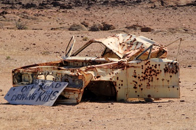 Auto mit Einschusslöcher - ist wohl ein schönes Ziel für moderne offroad Cowboys |