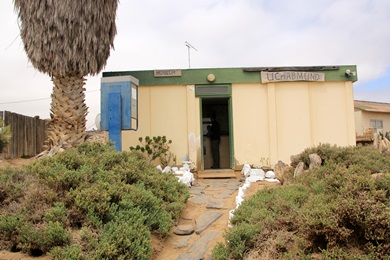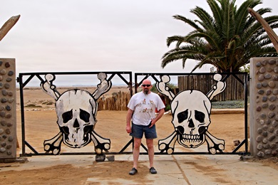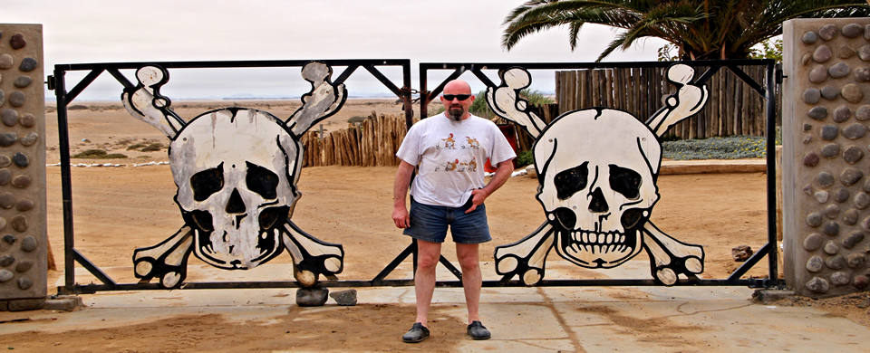 Gate zum Sekeleton Coast Park - dem Ziel für heute. Einmal bei den Totenköpfen stehen. Da die bisherigen Kilometer entlang der Küste fahrtechnisch und landschaftlich nicht viel hergaben, beschlossen wir die Tour hier abzubrechen. Die Kilometer nach dem Gate seien auch nicht anders erzählte man uns. Das war nicht weiter schlimm, dafür lockte eine weitere Nacht im Ugab Base Camp. |