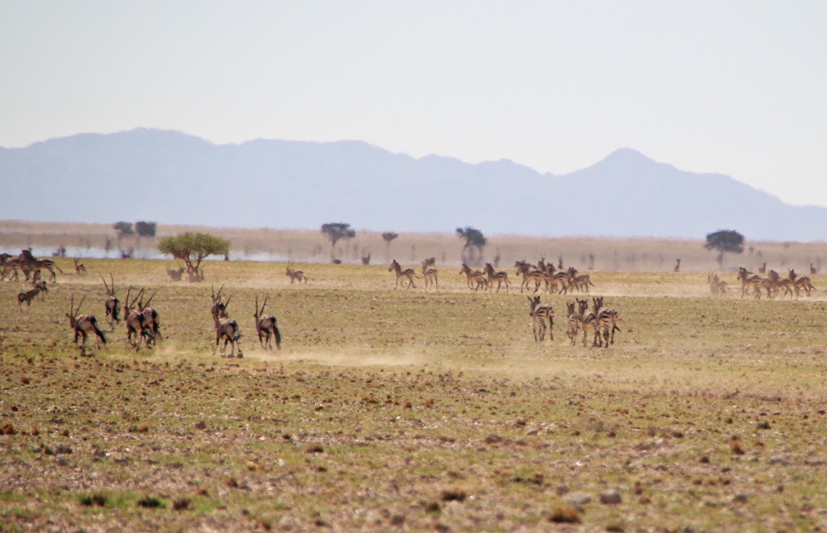 das größte Naturschutzgebiet Afrikas ist sehr facettenreich. Er bietet im Süden die höchsten Dünen der Welt, weiter nördlich die zerklüfteten Naukluft-Berge, die unwirtliche Westküste - auch Skelettküste genannt - und endlose Karstebenen.