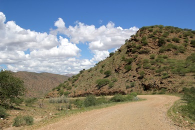 Wir verließen an diesem Morgen die Eagle Rock Guestfarm und fuhren auf der C28 Richtung Bosua Pass, bis wir an die Kreuzung zur D1412 kamen. D-Straßen sind in der Regel kleinere Nebenstraßen und für uns die bevorzugten Pads. Sie sind immer eine Fahrt wert - und diese führte uns auch wieder auf die D1982. Die D1412 stellte sich als einsames Sahnestückchen heraus Die Pad war landschaftlich sehr abwechslungsreich mit vielen Kurven, Steigungen und Gefälle und einer Flussdurchfahrt.
