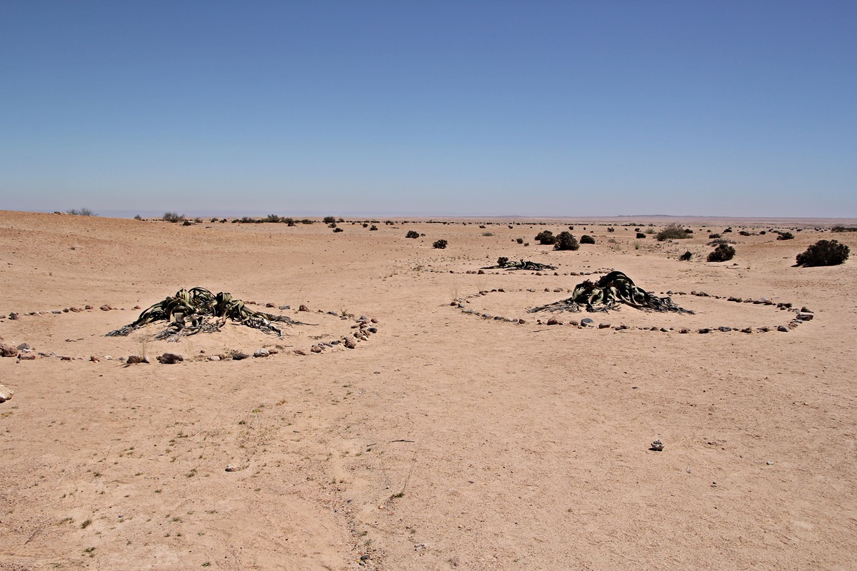 Welwitschias geschützt durch einen Steinkreis |