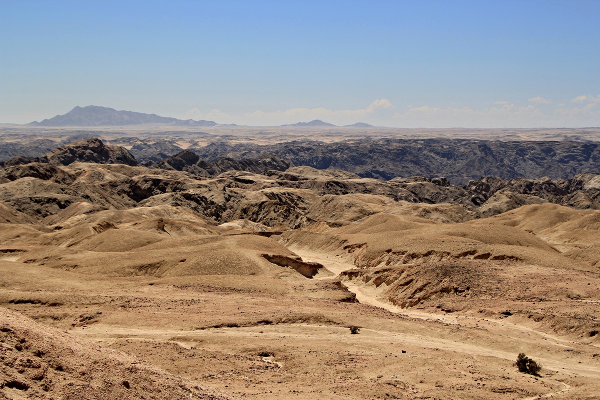 Ein Teil des Welwitschia Drives ist die Moonlandscape. Die Mondlandschaft oder auch Moon Valley genannt. Es erscheint mit seinen blanken Felsen und den tiefen Einschnitten ausserirdisch und abweisend. Einer der Gründe dafür ist, dass sich seit ca. 2 Mio. Jahren der Swakop River durch das "weiche" erosionsanfällige Granitgestein frisst. Die Temperaturunterschiede Tag/Nacht sorgen für den Rest.