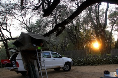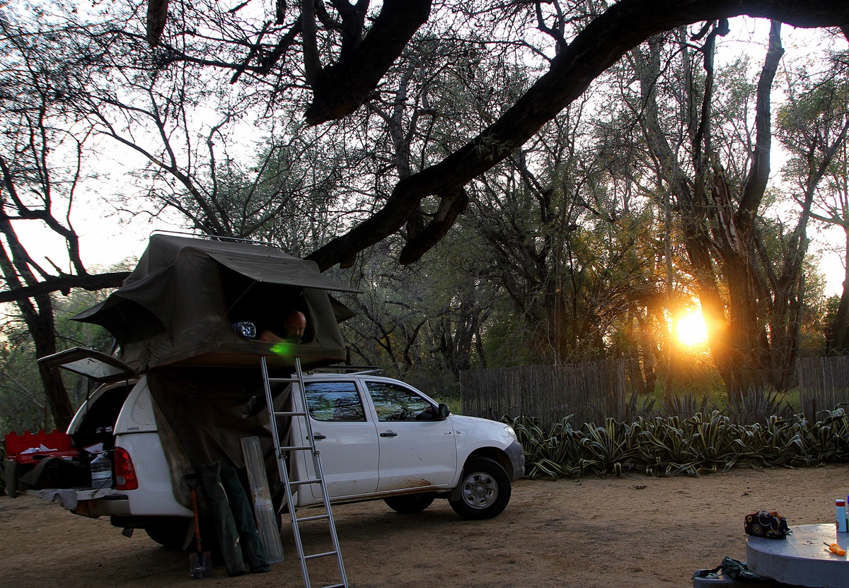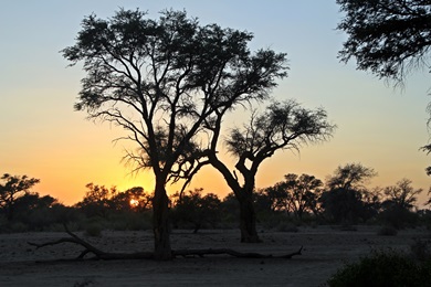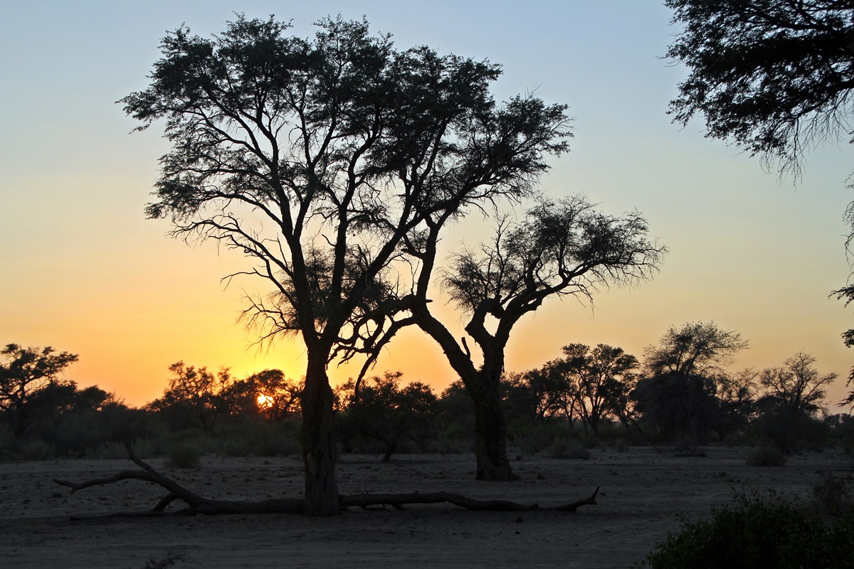 mit dem ersten Sonnenlicht begab ich mich auf Elefantensuche und beobachtete den Sonnenaufgang im Camp |