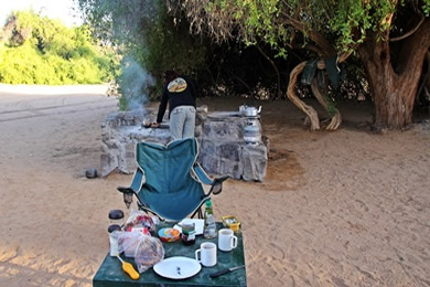 Tisch gedeckt - Toastbrot wird in der restlichen Glut des Vorabends getoastet. |