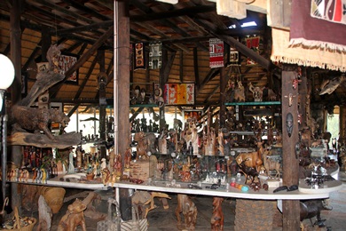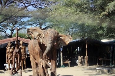 Das Kunstzentrum in Omaruru ist einen besuch wert. Es gibt eine große Auswahl an Holzschnitzereien. Mitterweile wird auch vieles exportiert. Zum Teil sind die Schnitzarbeiten riesig, bis zu 10 Meter hoch! Geschnitzt wird aus verwitterten, trockenen Wurzeln und Baumstämmen, die teilweise Tausende von Jahren alt sind. Das Holz wird meistens in der Halbwüste und in den nördlichen Gebieten Namibias gesammelt. Man kann den Holzschnitzern in Omaruru bei der Arbeit zuschauen. Sie kommen überwiegend aus der Kavango Region, wo die Menschen traditionell dem Holzschnitzen sehr verbunden sind. Sie gelten als besonders talentierte Kunsthandwerker. |