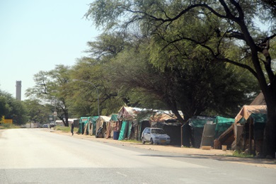 DER Holzmarkt in Okahandja. Den Holzmarkt muss man besucht haben. Er ist schon fast eine Stadt für sich. Zum Schluß hatten wir einige unserer T-Shirts gegen Souvenirs eingetauscht. Die Einheimischen waren geradezu scharf auf die Kleidung aus "Übersee". Das Handeln hatte spass gemacht und ich glaube den Holz-Verkäufern auch. So war zum Schluss jeder zufrieden..... |