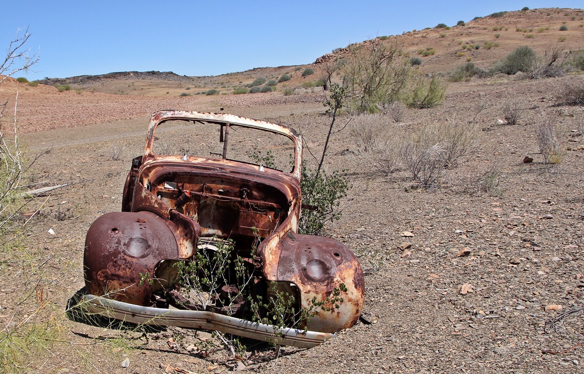verlassenes Auto am Wegesrand - dem Zustand nach parkte es hier schon länger |