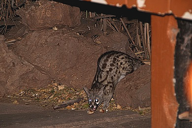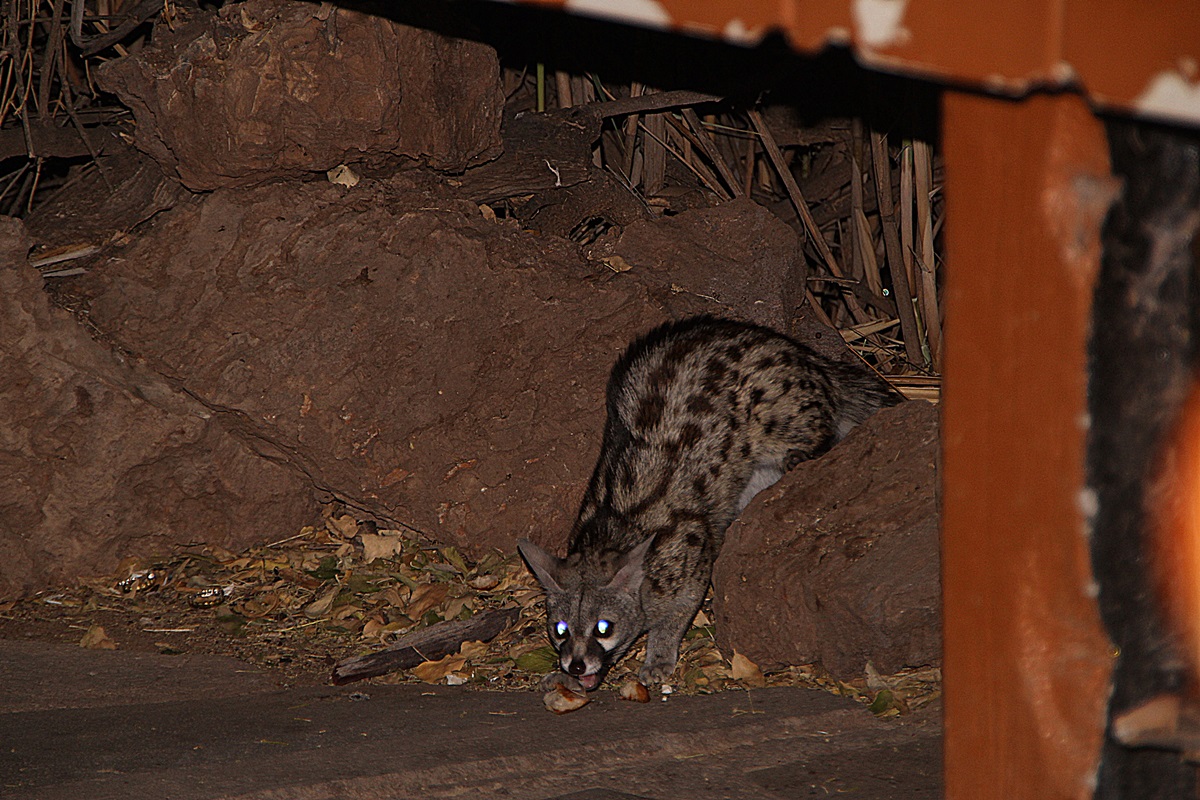 | ein wildes Tier (Meercat) an der Bar auf Beutezug ;-). Sie hatte wohl irgendetwas fressbares ergattert. |