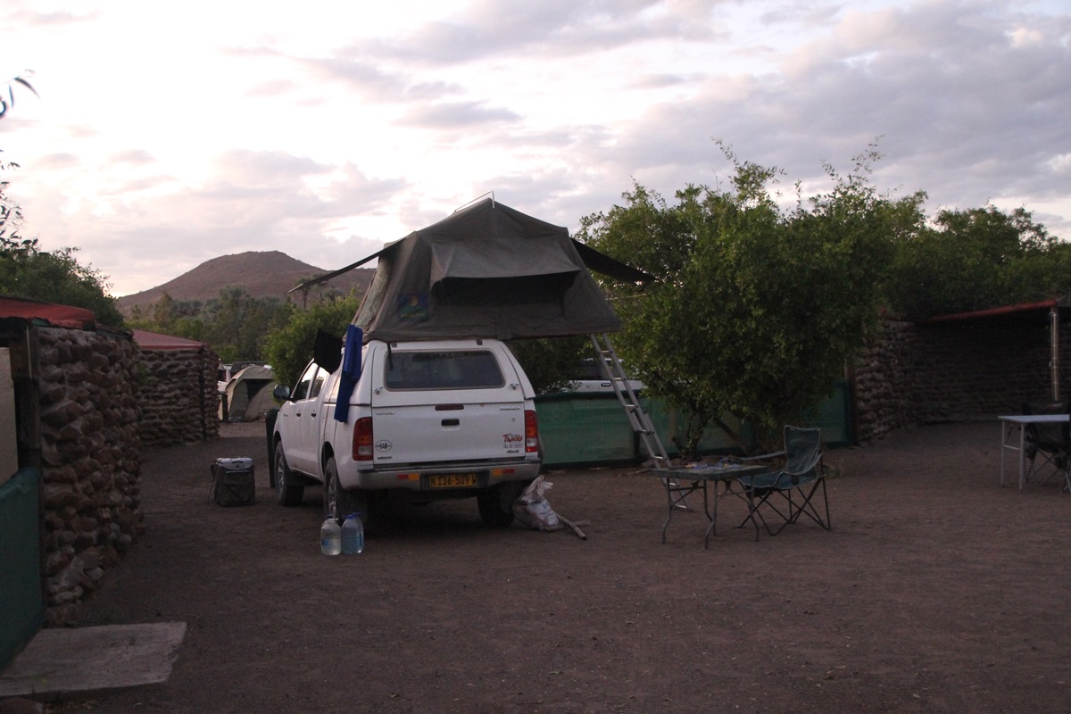Nachdem wir unser Dachzelt aufgestellt hatten, gingen wir an die gemütliche Bar, wo wir uns das erste Tafel Lager (Bier) des Tages gönnen wollten. Der Abend war sehr kurzweilig. |