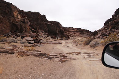unterwegs auf kaum erkennbarer Road - hier noch Fahrt auf Felsplatten |