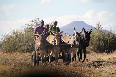 | 4PS- Donkykarre - Familie on Pad - in Namibia noch ein gängiges Transportmittel |