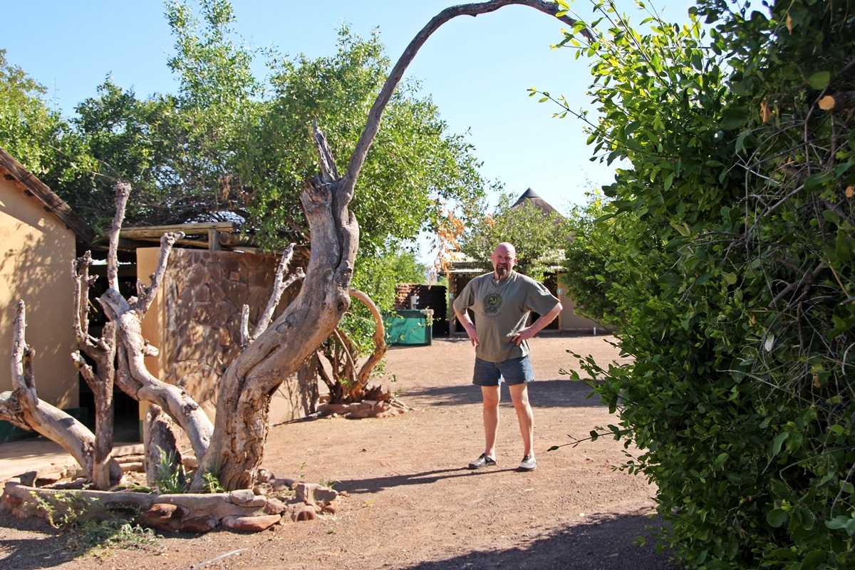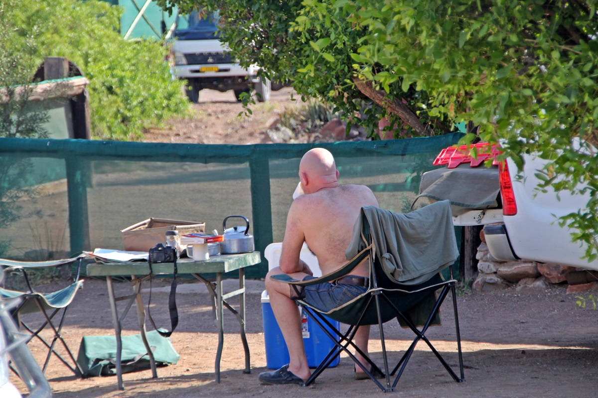 Rast an der Bar im Aba Huab Camp in dem wir 2006 bereits übernachtet hatten. In dem Camp hatte sich einiges getan. Früher urspünglich und abenteuerlich - heute strukturiert und für Touristen ausgebaut. Ob auch heute noch ein Elefant ungehindert durchs Camp rennen könnte wie 2006? |