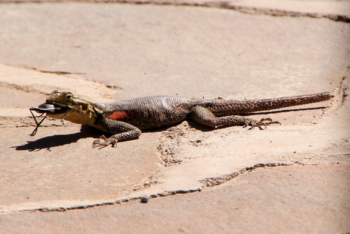 | Echse verspeist einen Käfer. Sie hatte einiges zu tun, denn der Käfer war gar nicht so klein. |