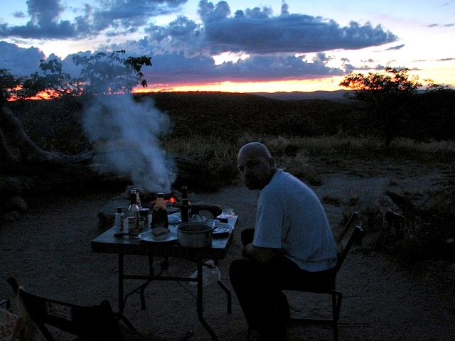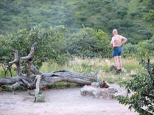 umkonstruierte Gasflasche) warm machen (Holz anzünden) und dann