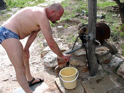 Dann ging es ans Duschen - zuerst musste man Wasser in einem Boiler (alte