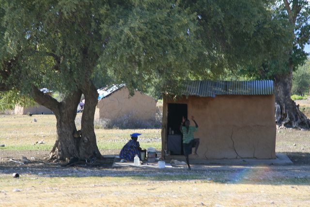 Himbas ausweichen. Die Himbas und Heros winkten uns freundlich