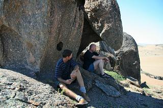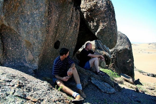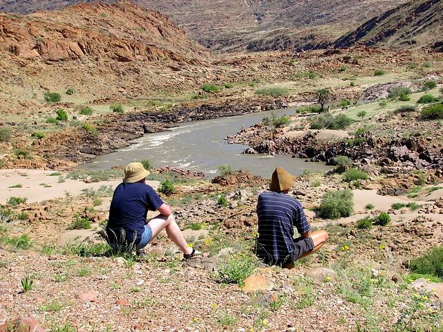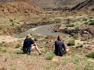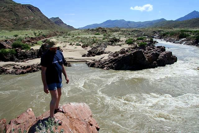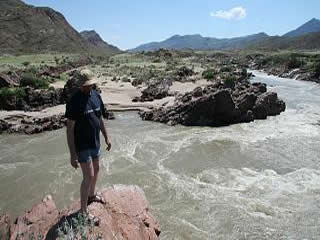 auf Felsen hoch über dem Kunene und sahen den reißenden