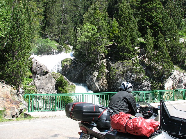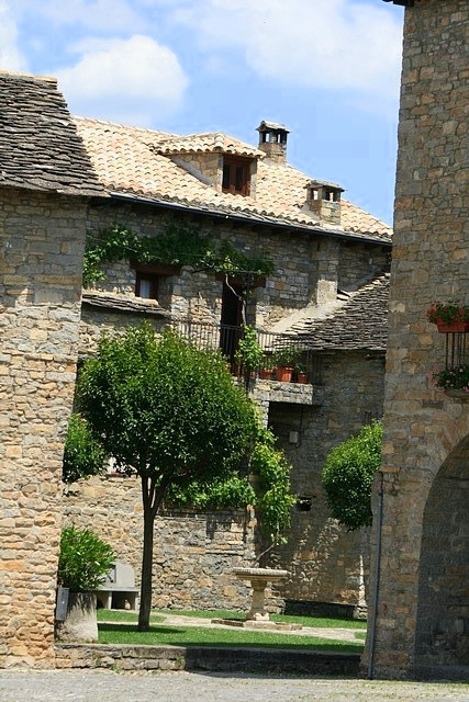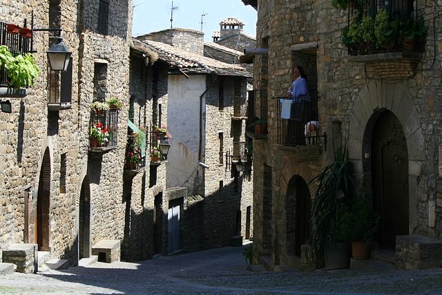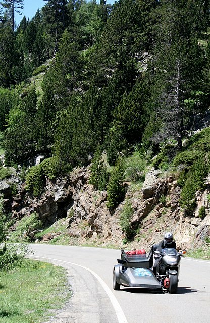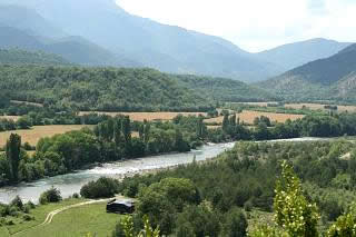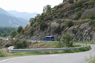 Aneto 3.408m und der Posets mit 3.371m. Die Landschaft war herrlich und der Himmel strahlend blau. Am Straßenrand gingen immer wieder kleine Wasserfälle nieder. Manchesmal war auch die Straße nass. Nicht auszudenken, wenn es hier mit dem Wetter richtig zur Sache geht. Der Rückweg auf der selben Stecke war nicht minder schön. In Benasque-Ort versuchten wir einen geeigneten Parkplatz für unser Gespann zu finden. Es war aussichtslos. In den schmalen Gassen war mächtig viel los. Alle Tische in den Straßencafes und Restaurants waren belegt, klar es war Mittagszeit und die Leute hatten Hunger. So zogen wir es vor, lieber weiterzufahren und nach einem ruhigeren Ort Ausschau für unseren täglichen Kaffee zu halten. | ||