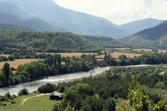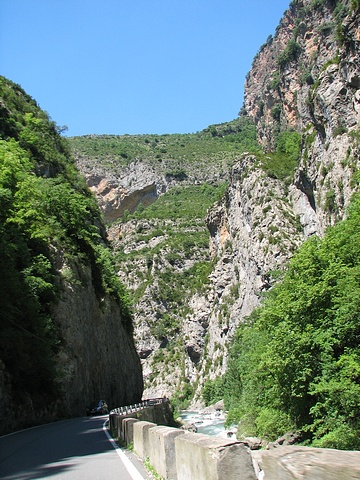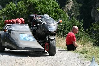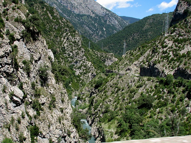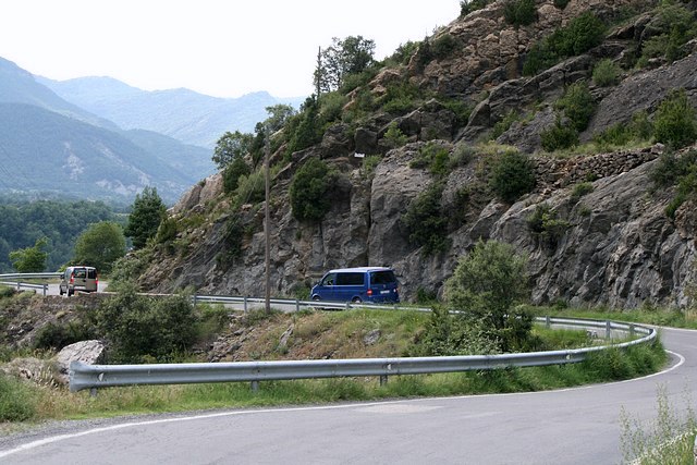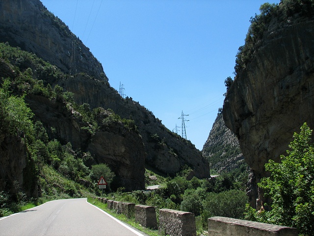 Wie folgten der N260 und passierten den Col de Foradada, 1.020m. Nachdem wir diesen hinter uns gelassen hatten, wurde die Straße zur "Autobahn". Eine breite Straße und es ging fast nur geradeaus noch dazu war es unerträglich heiß.... Selbst der Fahrtwind brachte keine Kühlung. |