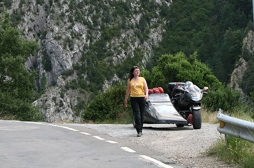 Auf dieser "Autobahn" gab es nirgendwo einen Rastplatz, aber wir hatten hunger und so machten wir am Straßenrand bei dem Ort Arro eine kleine Pause um unser Baquette mit Oliven, Wurst und Käse zu essen. |