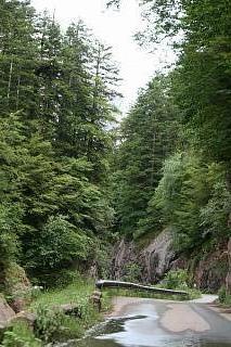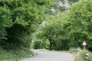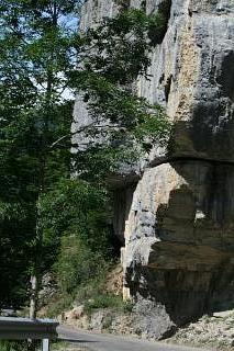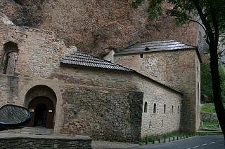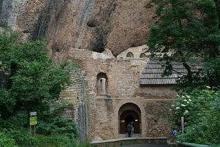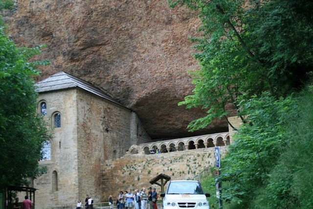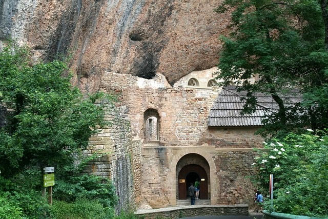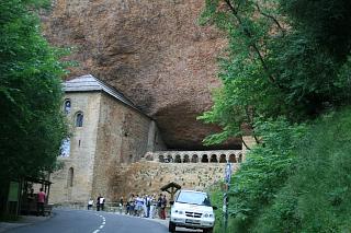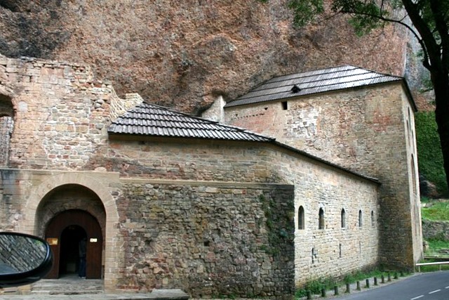 Das Kloster liegt eingezwängt unter riesigen Felsüberhängen. Es wurde im 9.Jh. gegründet, die heute zu sehenden Teile stammen meist aus dem 10. und 12.Jh. Einen Parkplatz gibt es an dieser Stelle nicht, wohl aber 2 km weiter oberhalb der Klippen beim sogenannten "neuen", barocken Kloster, das nach einem Brand im 17. Jahrhundert erbaut, von Napoleons Truppen allerdings bis auf Fassade zerstört wurde. Es gibt von dort aus das Vergnügen eines mühsamen, steilen Abstiegs auf einem dürftig markierten Waldweg. |