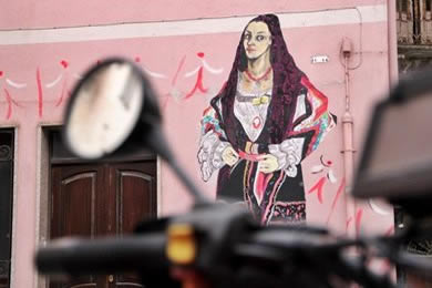 Galtelli - enge Gassen - das Gespann passt gerade so durch. |