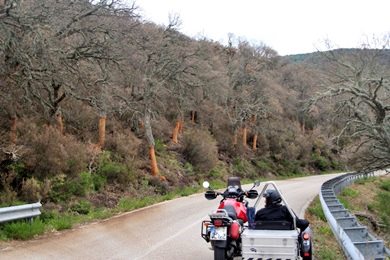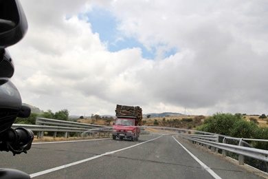 Korkrindentransporter - meist ziemlich hoch beladen. Manchmal schaut das nicht mehr vertrauenserweckend aus. |