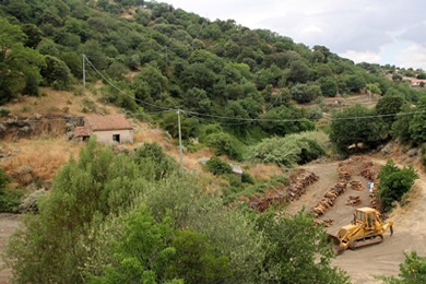 Korkgewinnung! In der Nähe von Nughedu San Nicolo, Foresta di Burgos und Anela gibt es auf einer Hochebene Korkeichenwälder. Zur Korkgewinnung werden die Stämme regelmäßig geschält, so dass zwei halbe Rindenstücke entstehen. Die Korkeiche kann dadurch zwar nicht zu ihrer vollen Größe heranwachsen, aber es schadet dem Baum auch nicht. Der Ertrag wird hauptsächlich zur Wärmedämmung verwendet. Wir haben gehört, daß die Korkeiche lediglich alle 9 Jahre geerntet werden kann, aber erst nach der dritten Ernte kann der Kork für Flaschenverschlüsse eingesetzt werden. Wir gehen davon aus, dass die Ernte in diesem Jahr noch nicht so lange her ist, denn die Stämme der geschälten Korkeichen leuchten noch..... |