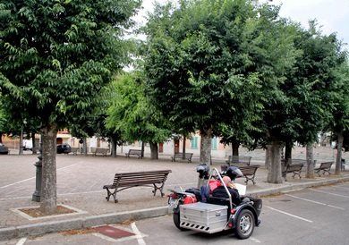 Nughedu San Nicolo - großer Dorfplatz gegenüber der Kirche - das Navi zeigte keine eindeutige Richtung. |
