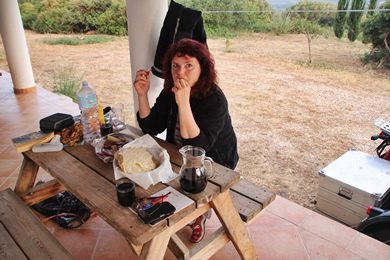 Da unsere Gastleute an diesem Tag - ein privates Fest hatten, bekamen wir am Abend ein Vesper bestehend aus Wurst und Käse. Das Vesper gepaart mit einem Krug Cannonau-Wein war sehr lecker. |